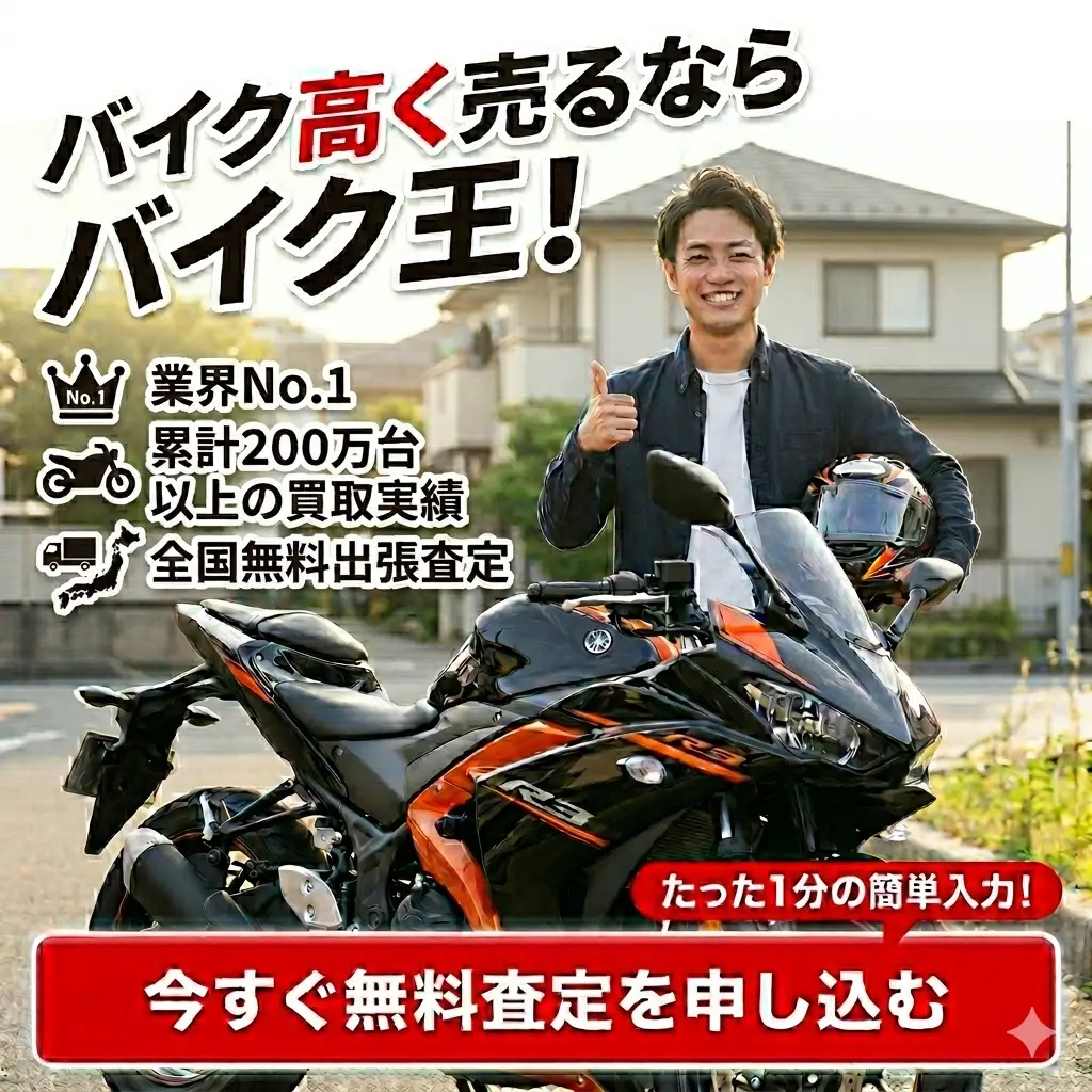 「🎵バイクを売るならGOバイク王〜」のCMでお馴染みのバイク王は、累計200万台以上の買取実績を誇る業界最大手のバイク買取業者です。